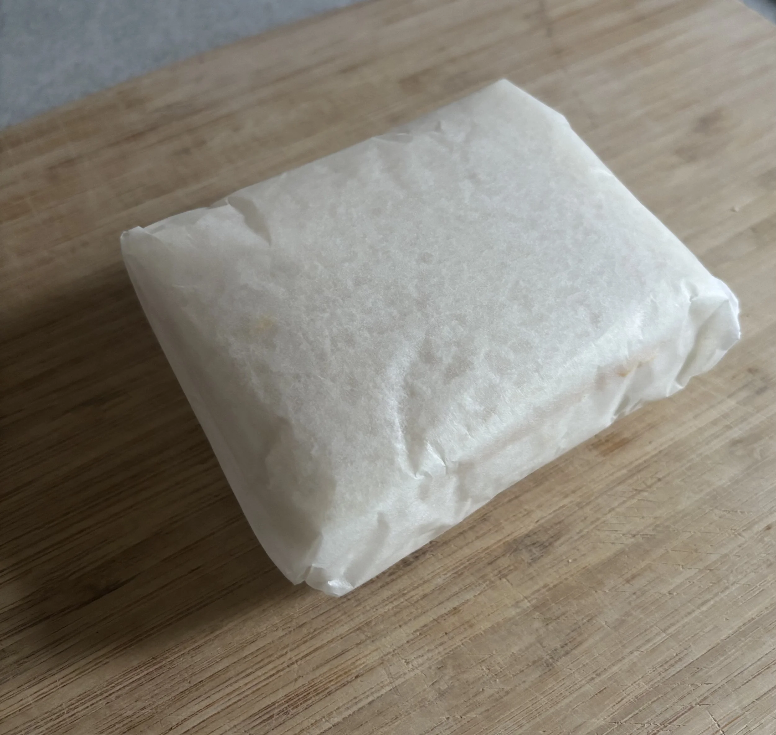 Lay out a sheet of parchment paper and place the sandwich in the center.